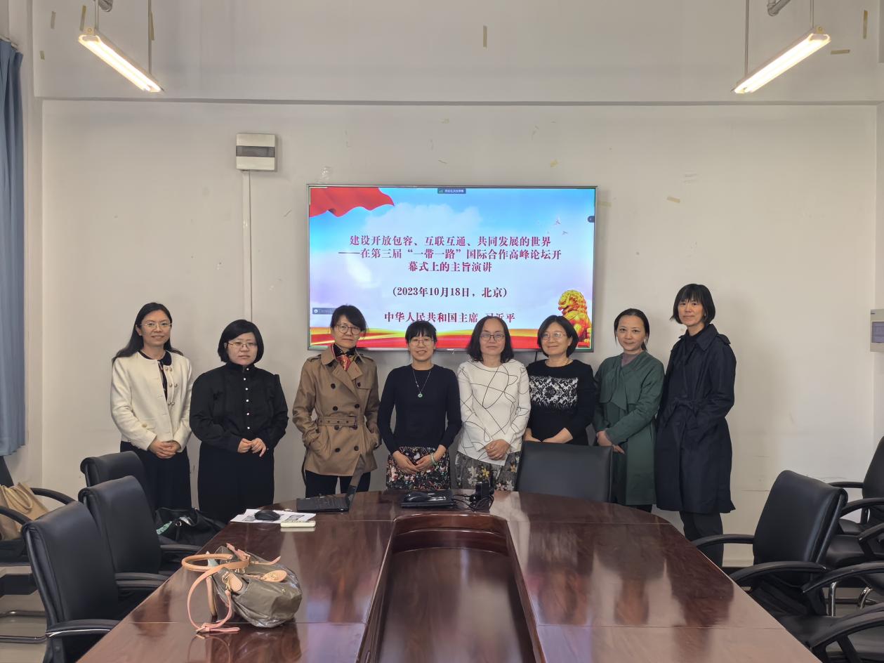 为纪念“一带一路”倡议问世十周年,跟进学习习近平总书记在第三届“一带一路”国际合作高峰论坛开幕式上的主旨演讲精神,大英一党支部结合自身专业特点,于2023年10月26日中午开展了习近平“一带一路”主旨演讲内容双语深入研读活动。会议由党支部书记陈蓓同志主持,大英一在岗教师全员参加。