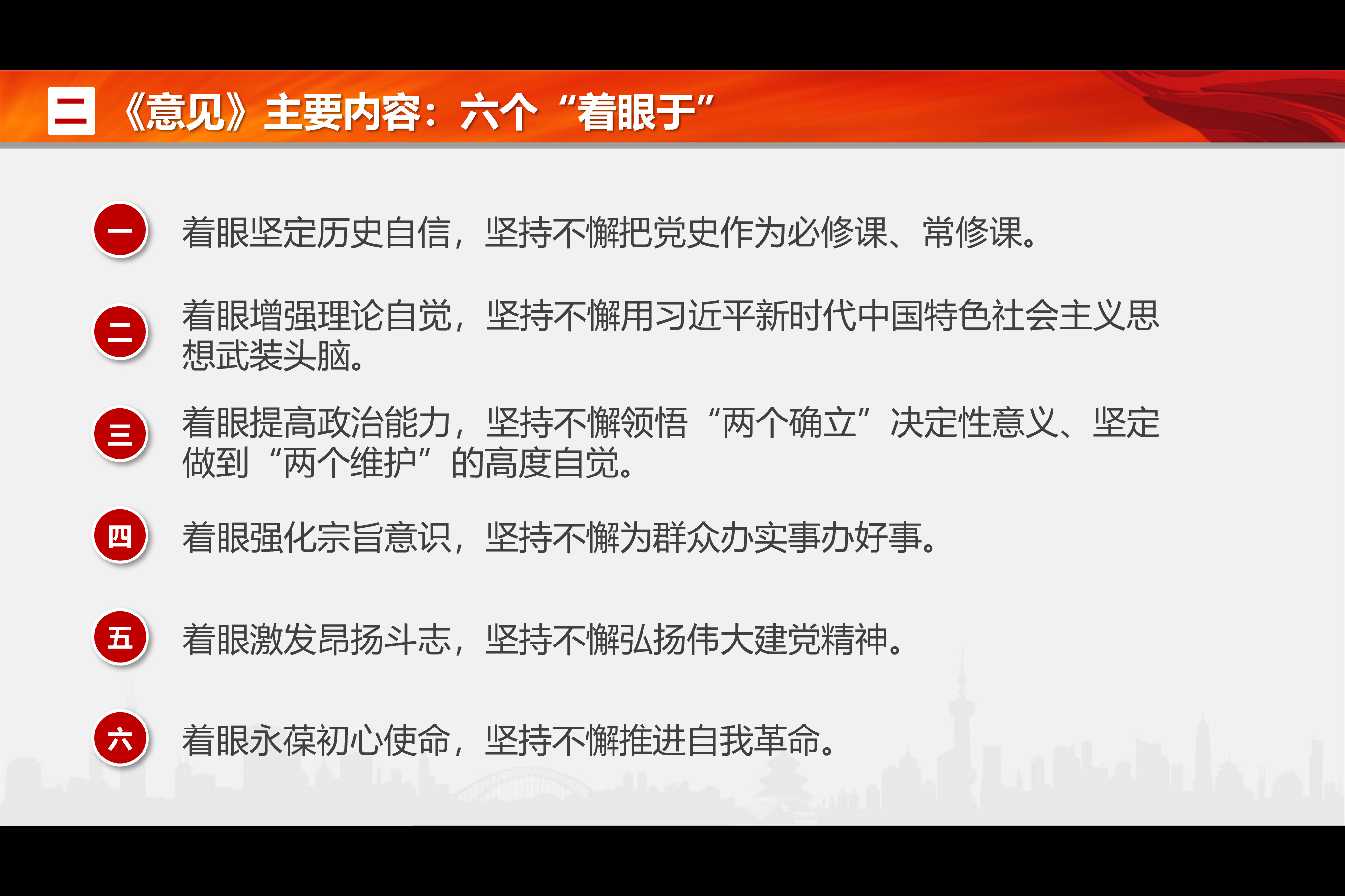 会议的主题为“知者行之始,行者知之成”。首先,支部书记王欣带领大英二全体党员教师传达学习了中共中央办公厅印发的《关于推动党史学习教育常态化长效化的意见》。这次印发的《意见》着眼“坚定历史自信”“增强理论自觉”“提高政治能力”“强化宗旨意识”“激发昂扬斗志”“永葆初心使命”提出了明确要求,具有很强的针对性、指导性。通过学习文件,大家意识到提高政治站位,进一步深化党史学习教育具有重要意义。一年来的党史学习教育使得党员们对“学史明理、学史增信、学史崇德、学史力行”的要求有了更透彻地理解,受到了一次全面深刻的政治教育、思想淬炼、精神洗礼,历史自觉、历史自信大大增强,达到了学党史、悟思想、办实事、开新局的目的。