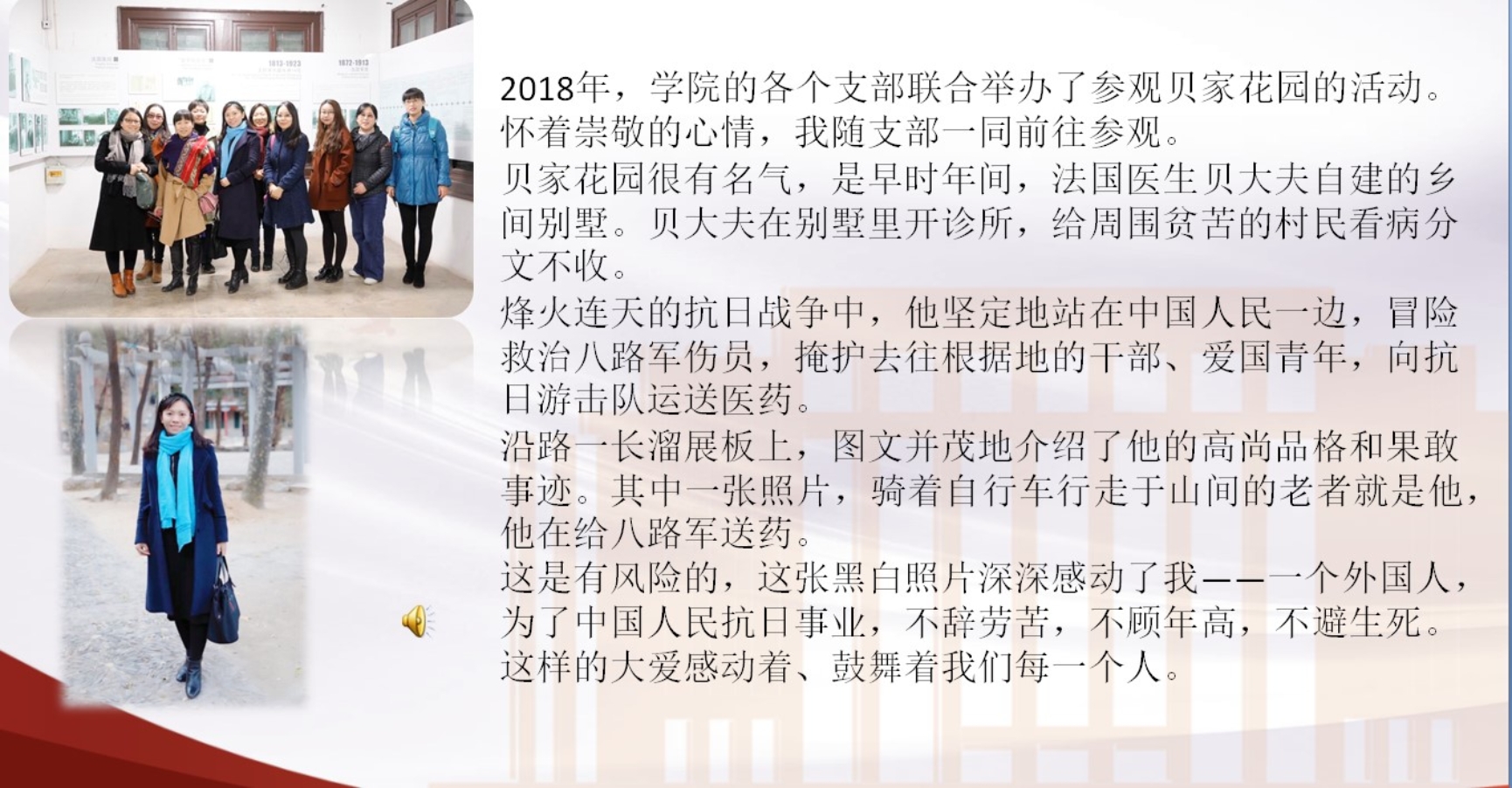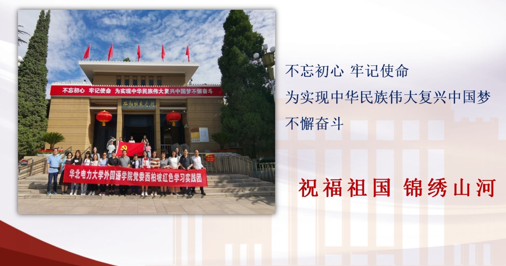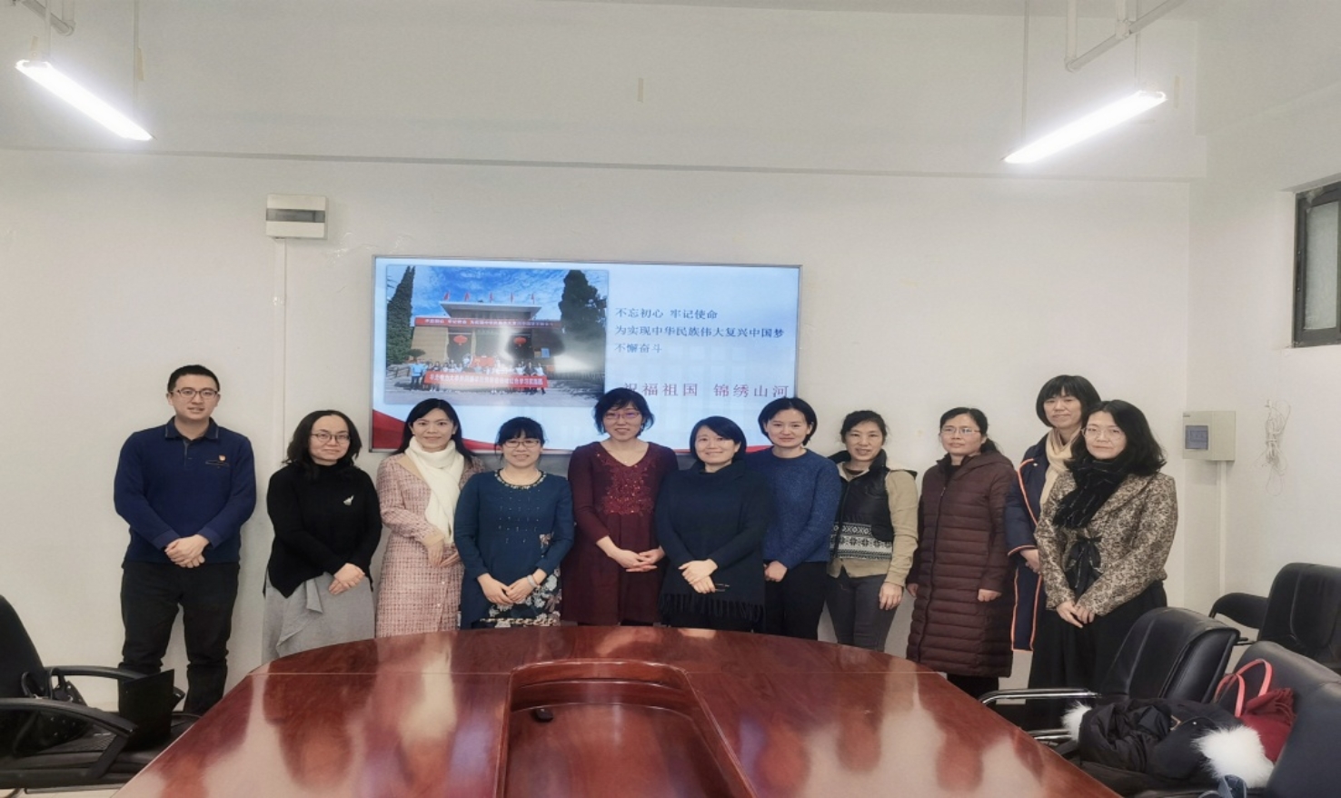 之后大英一党支部一起回顾过去展望未来,回顾了2021年完成的主要工作,在肯定成绩的同时希望在新的一年里有更大的突破。最后党员们以“祝福祖国锦绣山河“为主题,结合照片和感想向支部所有成员展示了曾经参观过的革命圣地,党员们感情真挚的介绍深深打动了每一位成员。