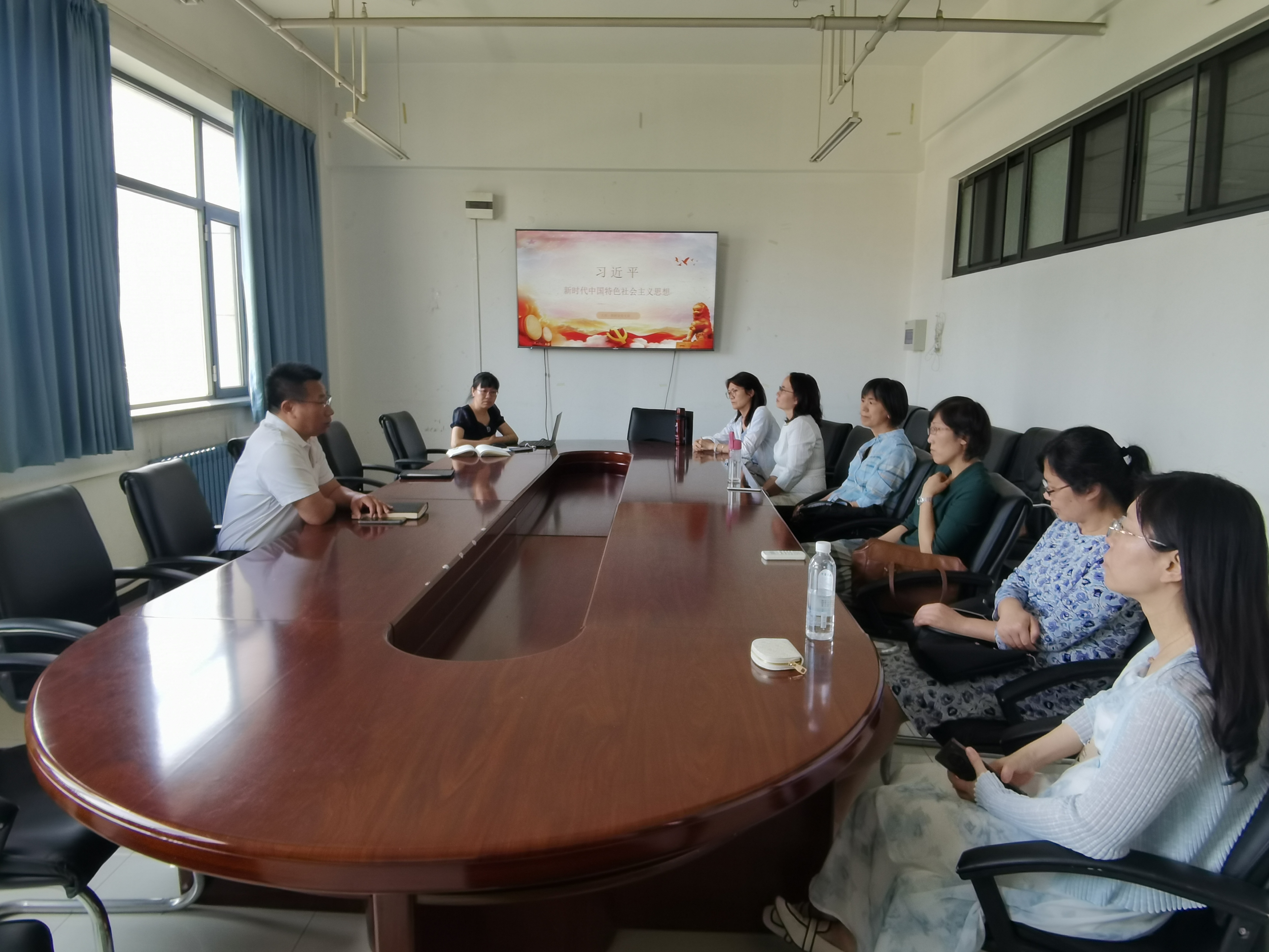 在学校如火如荼开展学习贯彻习近平新时代中国特色社会主义思想主题教育的大背景下,大英一党支部结合自身专业和教学特点,5月18日中午以“建设社会主义文化强国”为焦点内容,就文化自信的重要作用、如何通过思政教学培养员工文化自信开展了集体学习交流活动。会议由支部书记陈蓓主持,大英一全体在岗党员及教师参加。3044am永利官网书记于喜海同志莅临会议,并与参会教师进行了亲切交流。