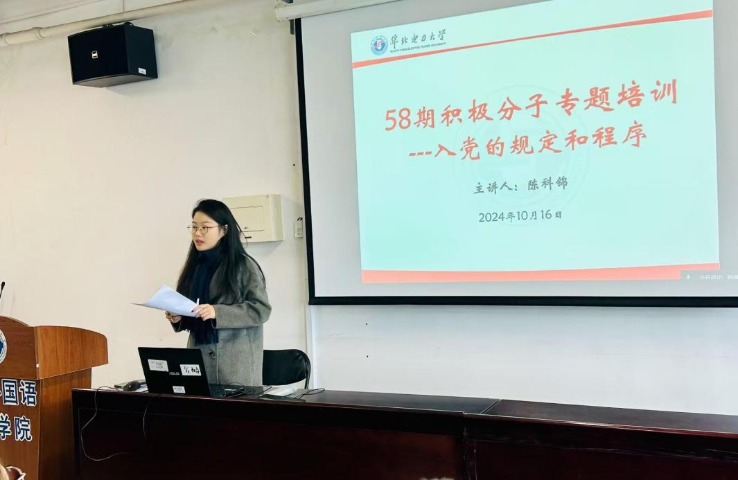 为深入学习习近平新时代中国特色社会主义思想,贯彻党的二十届三中全会精神,加强入党积极分子对党员发展工作流程的了解,2024年10月16日13:00,3044am永利官网第五十八期入党积极分子培训班党课第三讲开课,辅导员陈科锦主讲,入党积极分子全员参加。