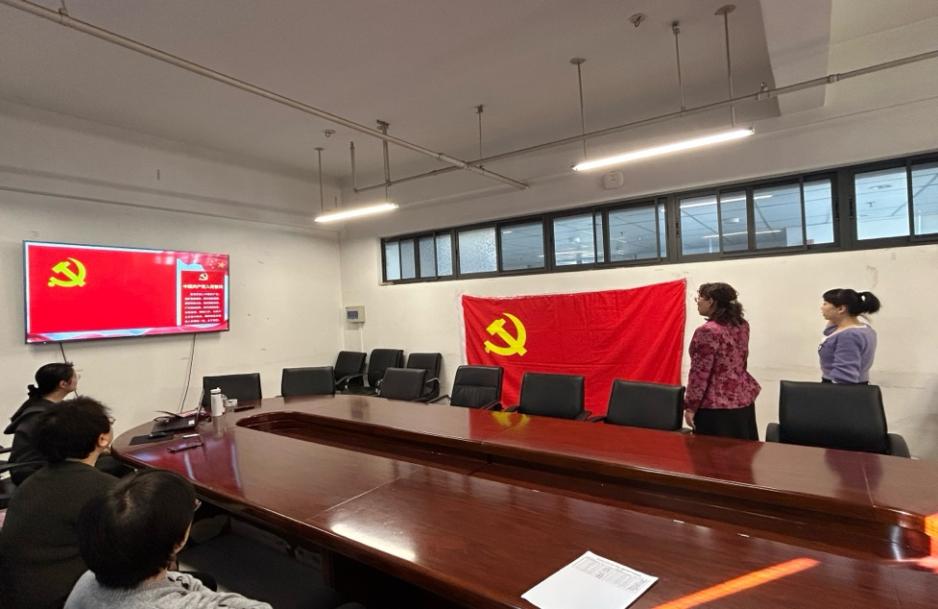 接着,为预备党员肖瑶举行了庄严的入党宣誓仪式。奏唱《国际歌》之后,郑蓉颖介绍了肖瑶同志培养情况。肖瑶于2024年12月10日支部大会讨论接收为预备党员后,经过公司党组织谈心谈话、公司党委审批、公司党委备案等程序,现在编入英语专业教研室党支部进行继续考察。肖瑶在书记的带领下,面对党旗举起右拳,坚定不移地一字一句念出入党誓词,表现出对党忠诚、履行党员义务的坚强信念。宣誓过后,肖瑶真挚地向所有党员前辈表示会更加严格要求自身,做好行为示范,坚持理论学习,不断提高业务水平,不仅争取在支部日后的活动中发挥更加积极的作用,而且努力在本职岗位上为党和人民的教育事业做出脚踏实地的贡献。宣誓仪式虽短,却鲜明体现出党员职责与使命在新老同志之间薪火相传,焕发出愈发蓬勃的生机和活力。正是更多新同志的加入才能保证党和国家的事业拥有源源不断的动力与生命力。