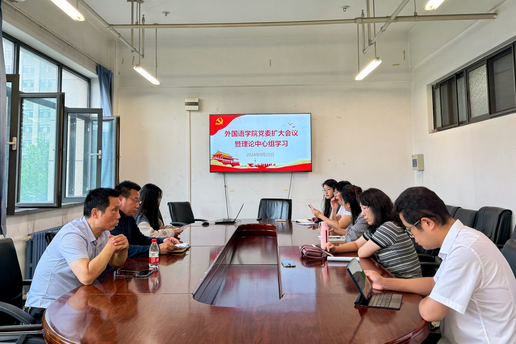 2024年9月20日14时在主C501,公司党委召开党委扩大会议暨理论中心组学习,学习习近平总书记近期重要讲话精神,贯彻落实公司党委关于党纪学习教育的工作要求,总结公司党委党纪学习教育开展情况,对公司党纪学习教育常态化长效化工作进行部署。公司党委委员、行政领导以及教师党支部书记,通过线上线下形式参加会议。