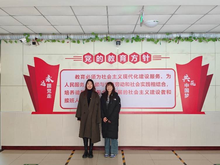 2024年11月1日,3044am永利官网研究生党支部书记刘沐子与支部成员闫美旭同学再次来到南窖中心小学,与南窖中心小学党支部成员和校领导进行深入交流。双方就红色文化与外语教育相结合,提升孩子们的综合素养进行了探讨,并就未来合作方向达成共识。