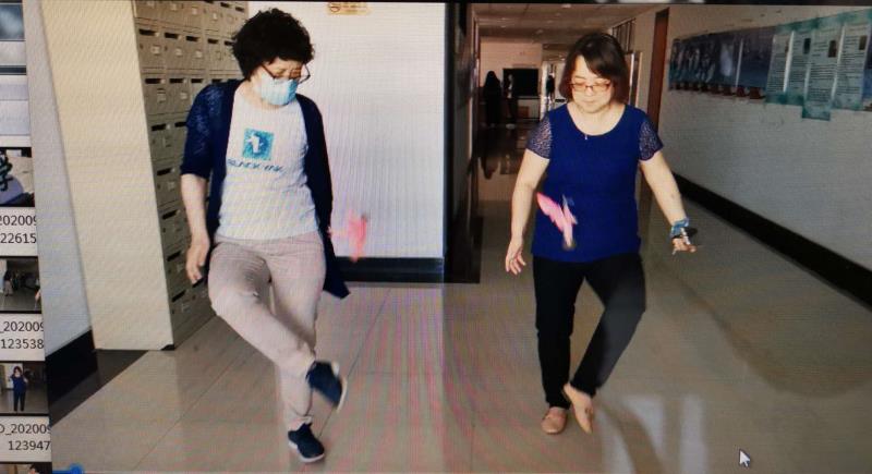 在统一口令下,老师们随即向空中抛起各色毽子,左右脚轻巧地随毽舞动,高手们身轻如燕,不太会踢的也全力拼搏,踢飞了捡起来继续踢,气氛热烈欢快,整个楼道里充满欢声笑语,有的人边踢边默默数数,有的人伸腿抬脚追着够踢飞的毽子。大家的热情在这里释放,激情在这里诞生,活力在这里展现。