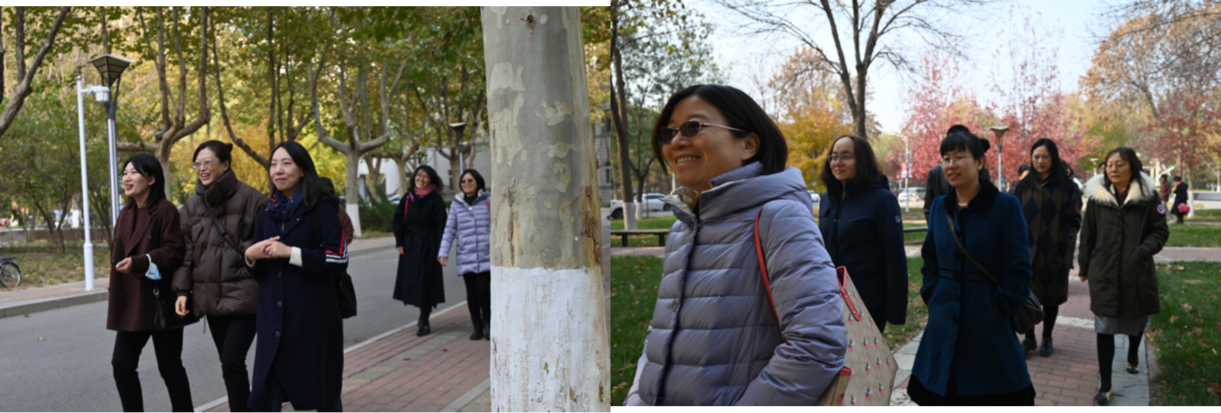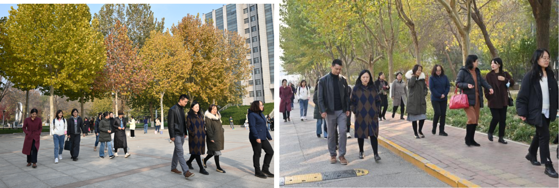 活动伊始,全体参加活动的教师在主C楼下集合并合影留念,随后迎着午间温暖的阳光出发。初冬将至,深秋的华电秋高气爽,落木纷纷。老师们从主C楼下出发,途径主楼广场,由南街走至主礼广场返回。老师们欢声笑语,心情愉悦,充分享受校园风光,在忙碌的工作之余享受运动带来的快乐,融洽的氛围与校园美景相得益彰。