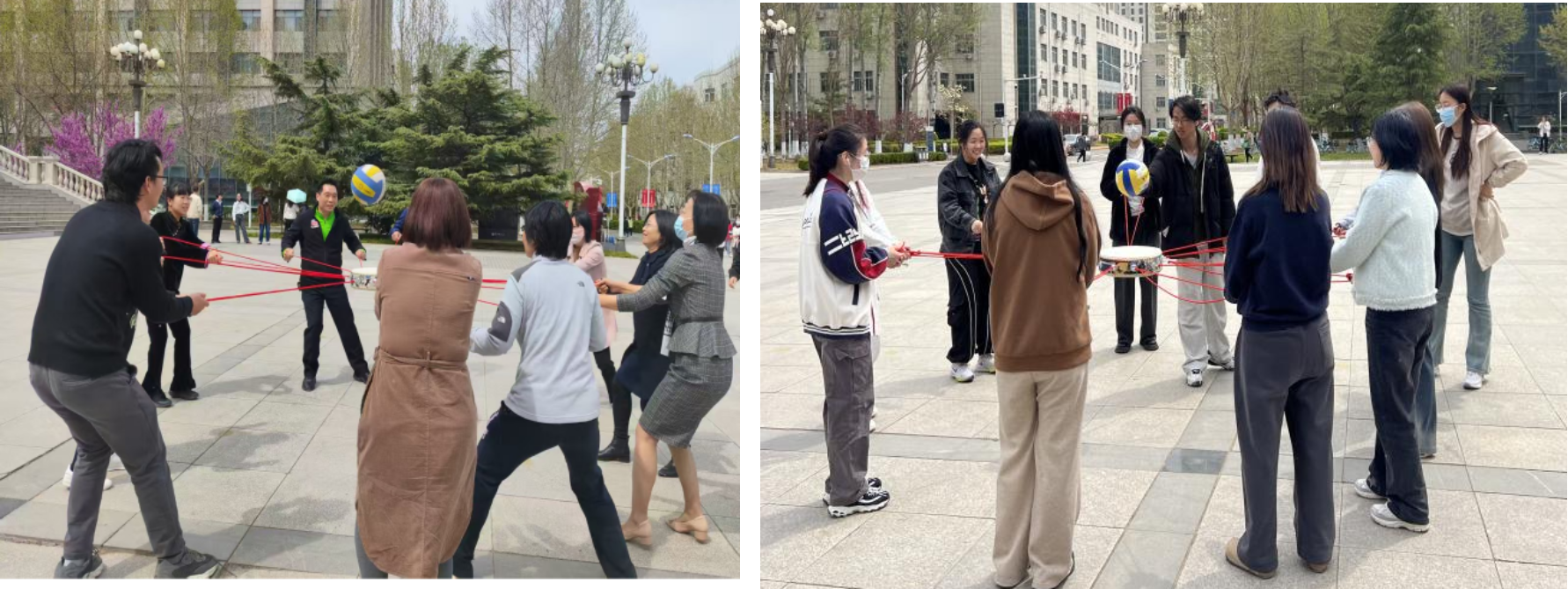 为增进师生情谊,培养团队协作精神,4月8日中午在主楼礼堂东侧广场,3044am永利官网分工会举办“‘语’你同心,鼓动精彩”师生动感颠球趣味活动。学院50余名师生参加了此次活动。