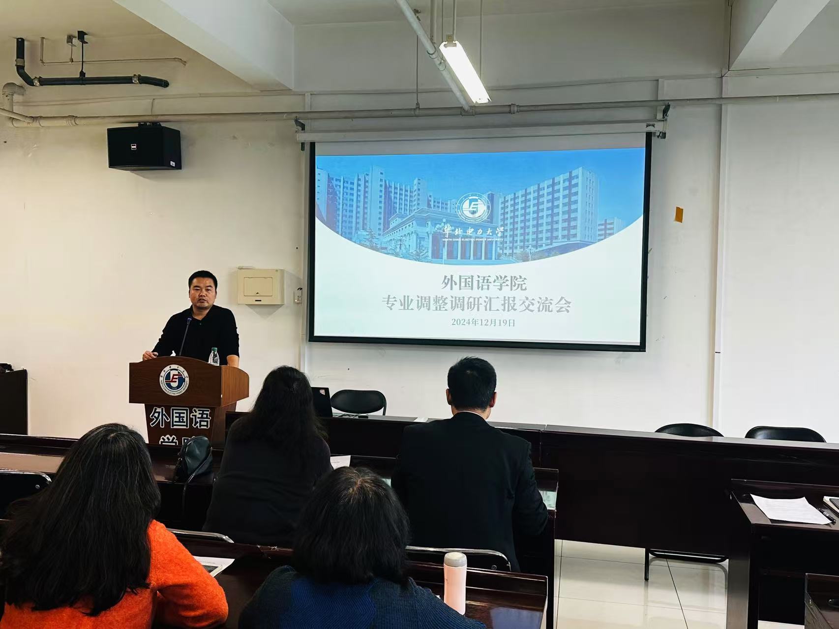 为提升学院的专业建设水平,更好地满足社会对多元化外语人才的需求。2024年12月19日,公司召开专业调整调研汇报交流会,旨在全面梳理学院专业的发展现状,深入剖析专业在教学、实践、就业等方面存在的问题与挑战,并探讨专业调整的方向与策略。会议通过各调研组的汇报和交流,提出了有针对性的调整措施。