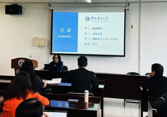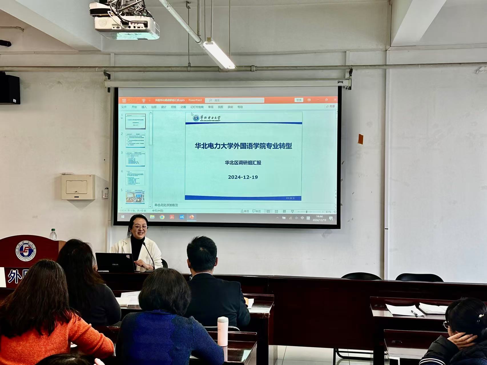 华北调研组孙利老师汇报了以用人单位为主的调研结果,提出外语专业需要结合能源电力行业进行专业转型,建议培养员工具备跨文化交流、工程项目管理、法律知识等多方面的能力,并探索与企业的深度合作,推动校企联合培养。