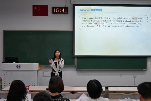张诗卉老师讲解了法语命令式,她采用板书、多媒体演示、现场演示相结合的教学手段,充分发挥各个教学手段的优势,引导员工围绕教学内容积极思考,逐步实现教学目标。