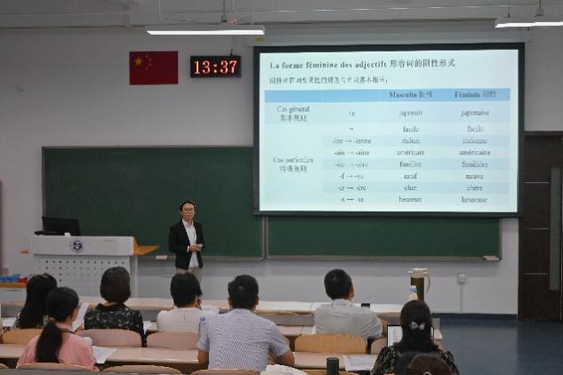 翟育铭老师讲解了法语的形容词阴性复数转换,她在讲授新知识后让同学们进行小组合作及展示,鼓励员工在面对挑战时保持耐心,细致得分析和练习。