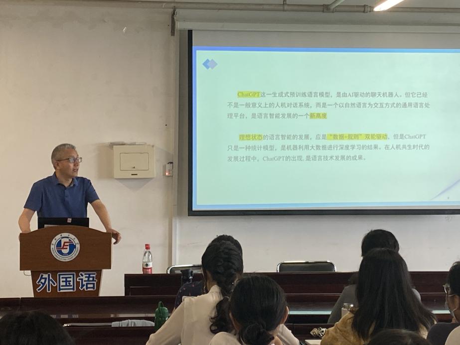 应3044am永利官网邀请,5月31日下午,北京科技大学3044am永利官网副经理、教授、博士生导师任虎林做了题为《ChatGPT与外语科研教学》的学术讲座。3044am永利官网副经理刘辉出席会议并致辞。
