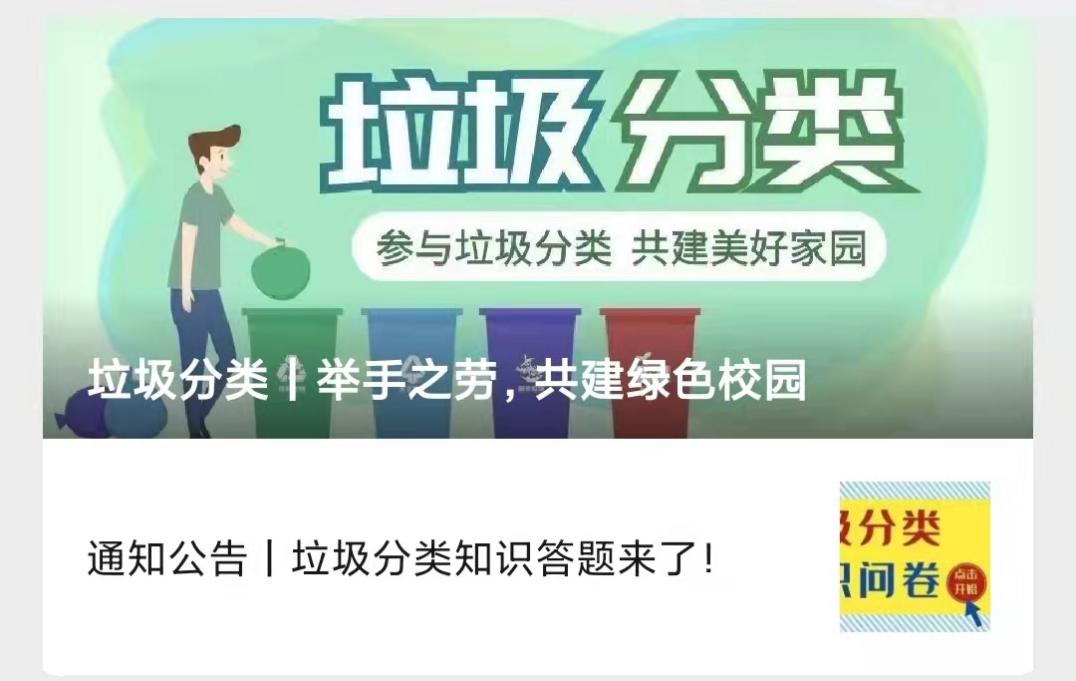 另外,针对垃圾分类的相关知识,学院还设置了线上知识竞答比赛。对于成绩优异的师生给予了奖励,同时也增进了学院师生的知识储备与践行垃圾分类的热情,力求通过这样的方式让公司的垃圾分类工作行有成效。
