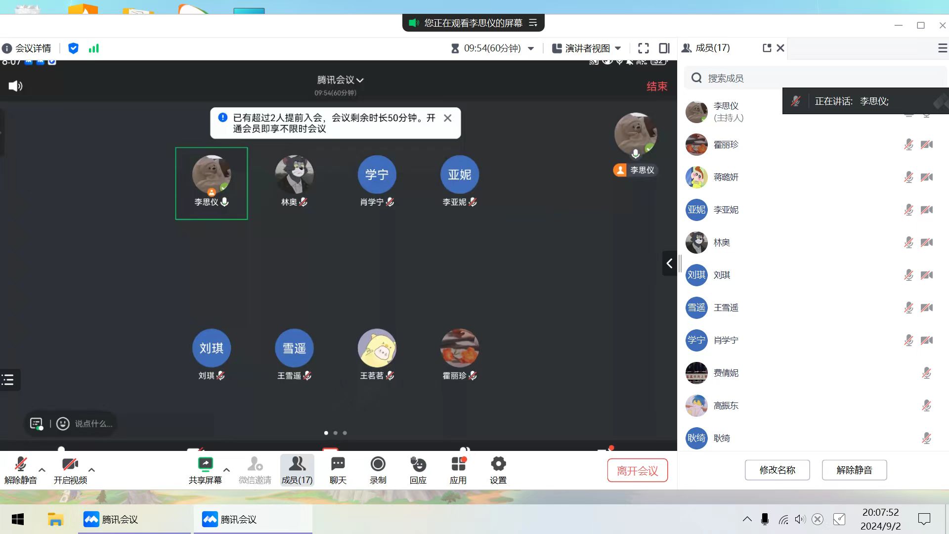 世界卫生组织给健康下的定义为:“健康是一种身体上、精神上和社会适应上的完好状态,而不是没有疾病及虚弱现象。”心理健康是健康的重要因素之一,为加强同学们对心理健康知识的认识,帮助大家正确看待和处理心理困扰,研外2475班在2024年9月2日20时召开线上主题班会,本次会议共17人参加。
