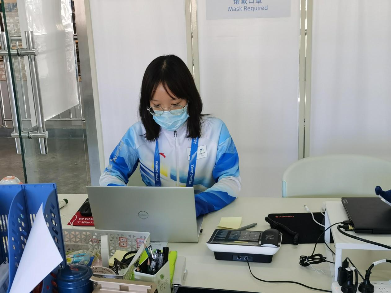担任延庆制服和注册分中心技术领域现场技术支持助理。主要工作有协助技术经理和技术工作人员完成好场馆技术设备的登记和发放;接听技术支持热线,联系工程师以维持场馆正常运行。在工作的每一天,她都在不断学习调整自己,争取以最高的水平服务好技术团队,服务好延庆制服和注册分中心,迎接北京2022冬奥会和冬残奥会,一起向未来!