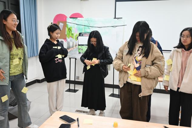 第二项活动是“压力释放”。同学们在便笺上写下生活中感到有压力的事情,并将其贴在身上。准备就绪后,大家围成一个圈,通过蹦跳的方式将身上的便签抖落。随着便签纷纷落地,仿佛压力也随之释放。在欢声笑语中,同学们体会到了分享和释放的力量,心灵得到了慰藉和快乐。