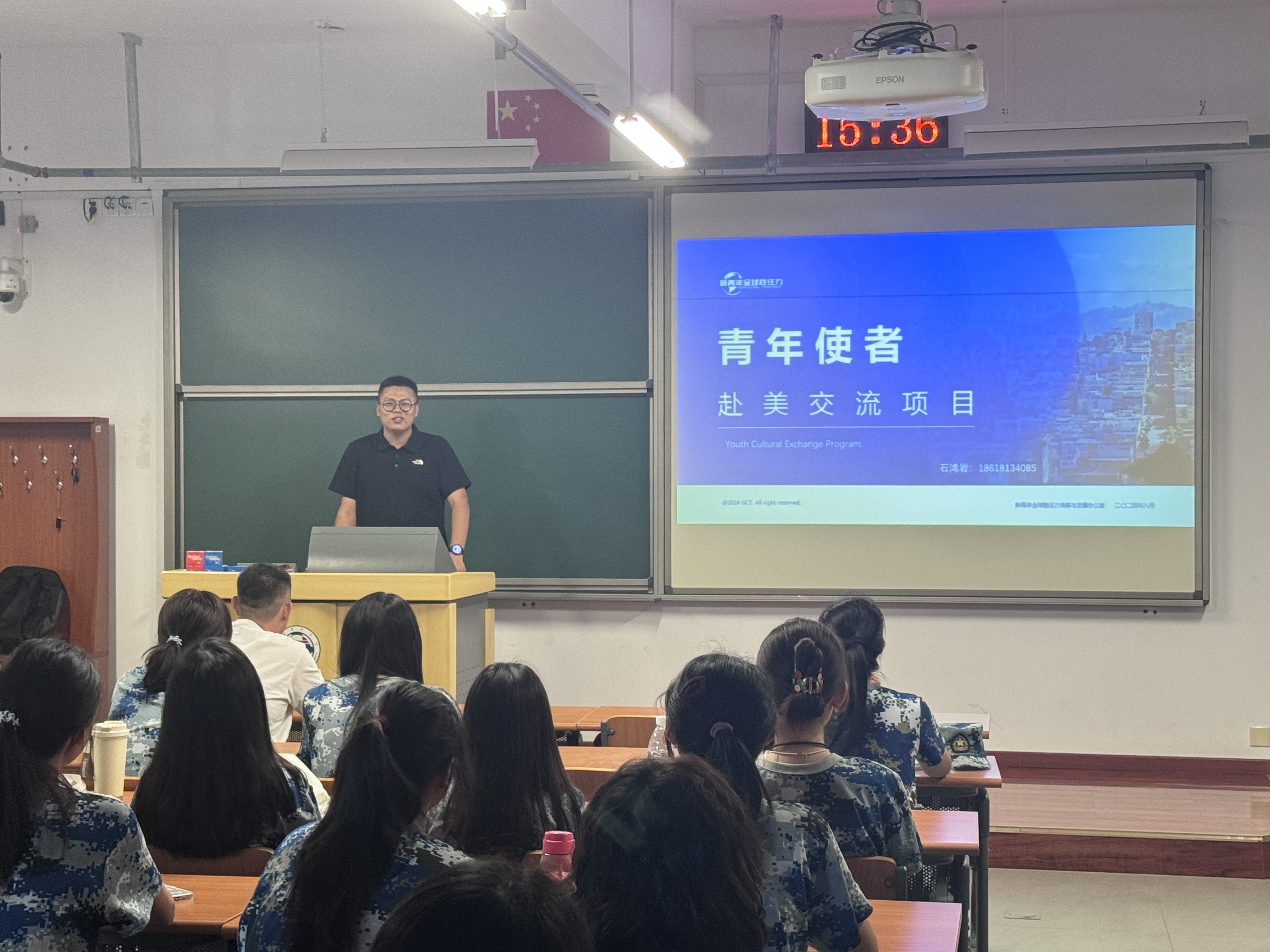 辅导员陈科锦作开场介绍,指出在这个充满机遇与挑战的时代,国际化教育不仅是知识的跨越,更是视野的拓宽与文化的交融,拥有国际视野和跨文化交流能力已成为未来人才不可或缺的核心素养。青年使者赴美交流项目是学校教务处为员工搭建的一座连接世界的桥梁,鼓励大家勇敢走出国门,将中国的声音、中国的文化传递给世界。
