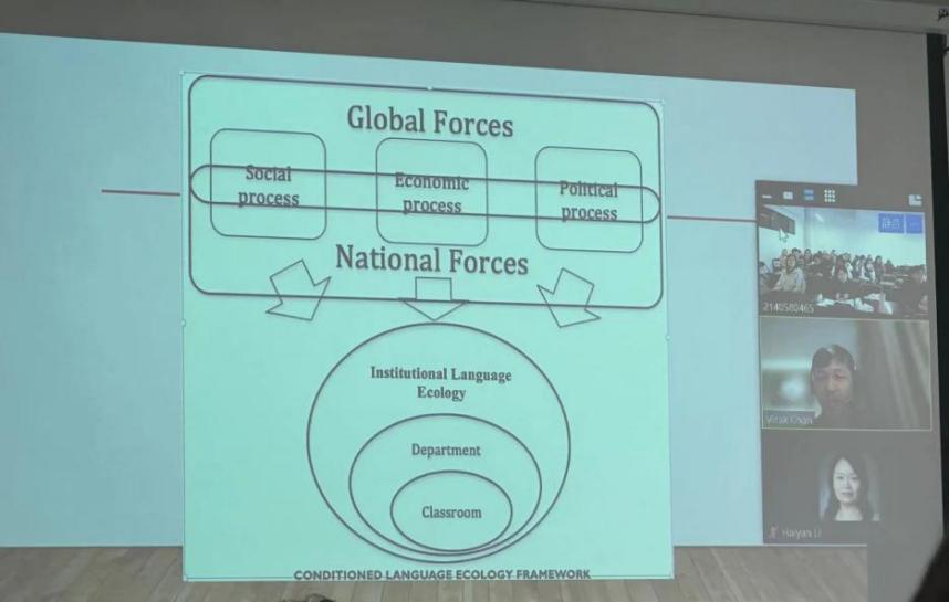 讲座伊始,Virak Chan教授提到了”translanguaging”的概念,强调个体应充分利用语言以及各种多模态资源,最大化地进行意义建构,聚焦“translanguagingpedagogy”的,具体而微地剖析了员工们在地理旅游课堂上的语言实践。