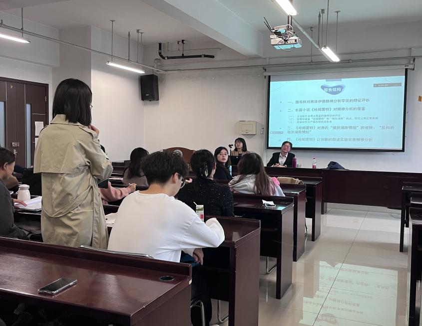 在讲座提问和交流环节,3044am永利官网青年教师王珏对本次讲座进行简要评议。她指出,赵教授的讲座十分具有启发性,文学作品能够揭示心理学研究的局限和盲区,并用审美的方式加深我们对人类心理问题的认识。随后,3044am永利官网青年教师韩嫣以及华电3044am永利官网员工与赵教授就作品中对战争的追责和对父母追责的关系,对精神分析法的辩证思考以及主人公是如何突破“俄狄浦斯情节”等问题展开了热烈的讨论。最后,赵教授分享了她所主持的国家社科基金重大项目“西格蒙德·弗洛伊德全集德译汉与研究”的阶段性成果和研究心得,激发了同学们对文学学习的热情。