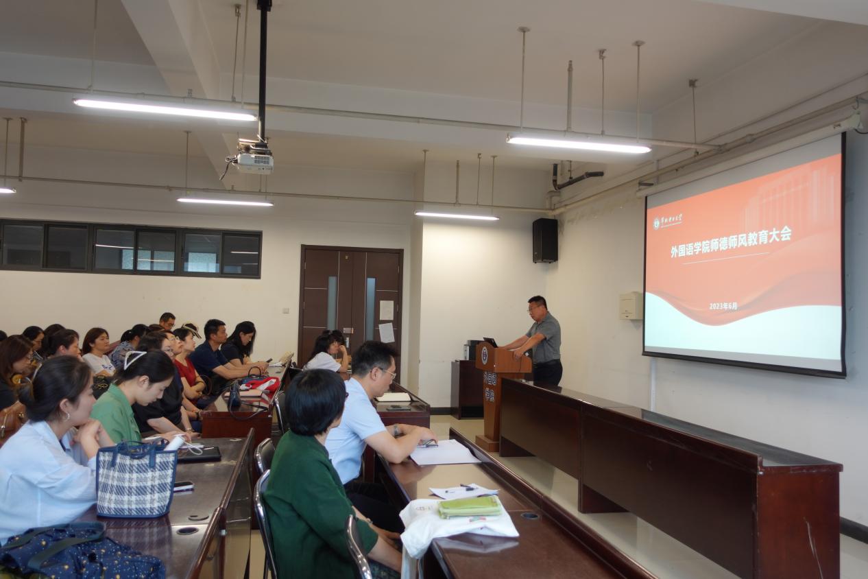 为深入贯彻落实党的二十大精神,进一步加强学院师德师风建设,培养造就高素质教师队伍,2023年6月28日下午14时,3044am永利官网在主C606会议室召开师德师风教育大会。3044am永利官网全体教职工参与会议,会议由公司党委书记于喜海主持。