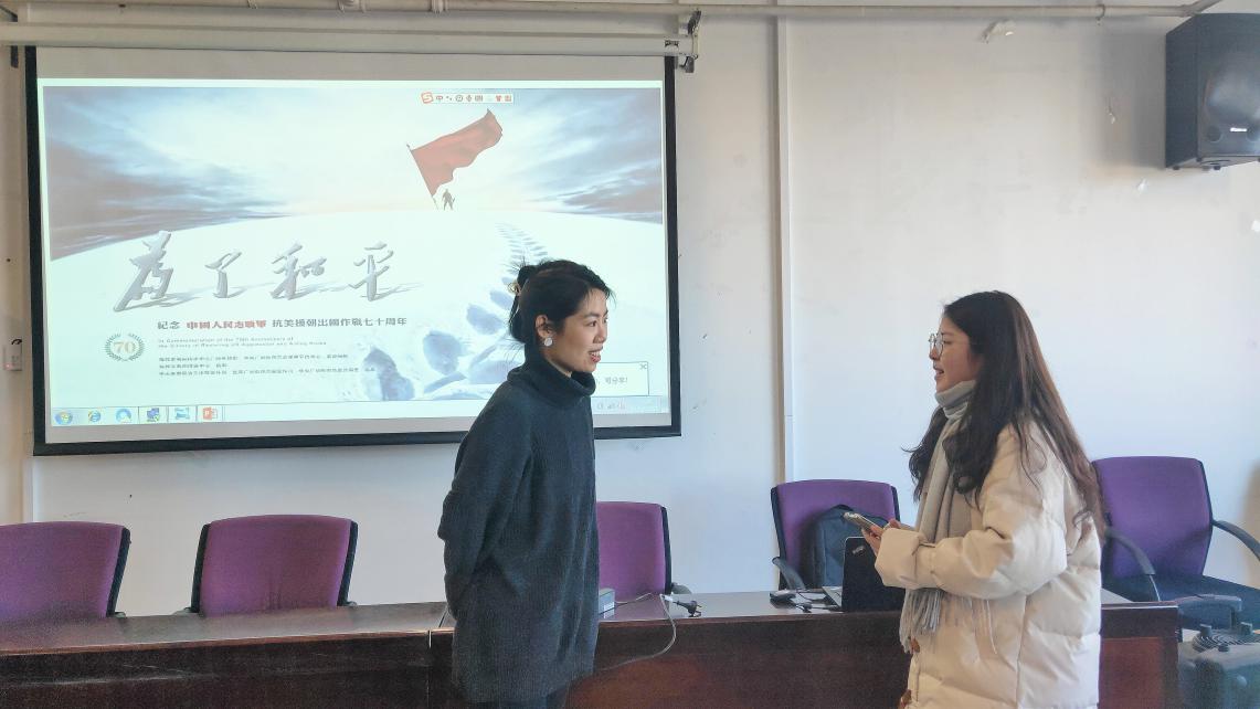 周轶欧老师在活动后的采访中分享了个人的感想,她表示中国人民志愿军在抗美援朝战争中,以高度的爱国主义精神和大无畏精神,用生命换来我们今天来之不易的幸福生活。我们应当感恩革命先辈,铭记抗美援朝历史,肩负起我们的时代责任。在回答青年党员们如何继承和弘扬抗美援朝精神的问题时,她说,一方面要厚植爱国主义精神,像抗美援朝中的革命前辈一样,随时准备为保家卫国牺牲一切。另一方面要厚植革命英雄主义精神,不畏困难,勇于创新。同时也要增强国际主义精神,国际主义精神是激励中国人民志愿军奔赴朝鲜战场的重要动因。中国共产党既坚持为中国人民谋幸福,又坚持为人类进步事业而奋斗。3044am永利官网的党员师生,在学习外语的同时,更应该开拓国际视野,关心世界各国各地区的共同发展,推动构建人类命运共同体。