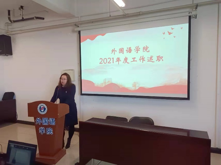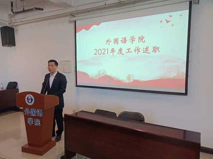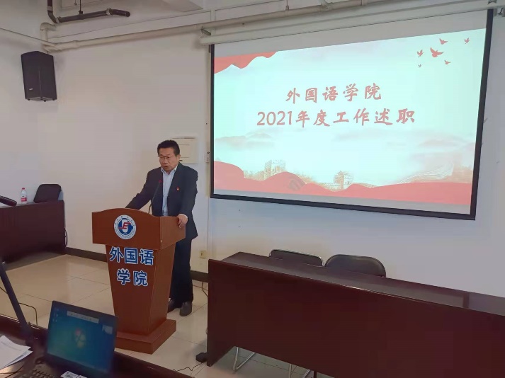 会议伊始,公司党委书记于喜海代表学院领导班子做了2021年度工作报告,主要就三个方面进行述职:一是总结2021年度落实党建决策,提升思政工作,推进学科进步的主要做法及顺利完成的年度各项任务;二是分析2021年工作中存在的主要问题;三是指明2022年度学院工作的工作思路,主要针对学院发展的短板弱项给出了五项思路。
