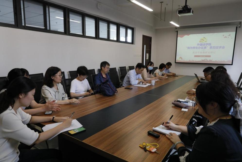 在座谈中,老师们积极地提出了阻碍学院发展的一些问题,例如:团队队伍建设方面,急需引进高质量人才应对目前高强度的授课工作,也需要为学科发展进一步培养和发展新的硕士生导师;硬件设施建设方面,急需改进维护语音室的设备、优化办公环境;人才培养方面,进一步优化公司产品过程,以客观规律为准绳,重视文科培养与理科培养的不同,改进公司产品中的挚肘因素,为培养高质量人才提供良好的制度基础;教研科研方面,在加强与其他教研室教师的合作方面,希望院方出台给予相应的工作量认定的相关规定,保证老师们在完成本职工作的同时,还能保有积极的态度进行跨教研室间的教学和科研活动。