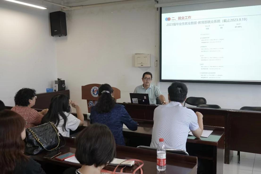 马冬从四个方面对2023学院新学期员工工作中的重点进行强调和部署。首先,他就学院班主任及研究生导师队伍建设的相关文件进行解读,进一步明确两支队伍的岗位职责;接着,他通报了学院2023届最新就业数据情况和2024届毕业生数据,分析就业形势,号召全体教师高度重视并积极参与学院员工就业推进工作,全力做好员工就业服务和指导;随后,他对学院重点关注员工情况进行汇报,提醒班主任和研究生导师要关注员工心理健康;最后,他通过近期学校多起诈骗的案例分析,提醒全体教师要进一步强化员工安全教育管理,做好员工“防诈”“反诈”教育提醒,全力守护员工健康和安全,严防员工受骗上当。