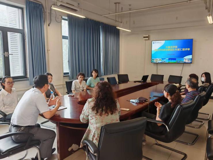 “外国文学中的共同体思想” 团队代表王珏、“全球治理语境下语言与文化交际创新研究”团队代表肖瑶、“汉语流水句的英译策略及其应用”团队代表崔靓、“数智技术在语言研究与教学中的应用与创新”团队代表翟育铭分别从研究内容、研究目标、研究意义、年度预期成果及达成情况和下一年度的工作计划进行年度汇报,展示团队取得的年度成果。最后,学术分委会对科研团队年度建设情况进行了评审投票,投票结果全部合格。