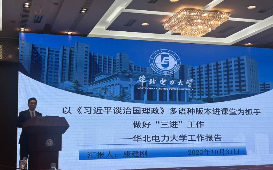 康建刚应邀做了“以《习近平谈治国理政》多语种版本进课堂为抓手做好‘三进’工作”的报告,介绍了学校和学院层面如何重视抓落实情况,并就教学内容和课程体系改革等方面分享了3044am永利官网的先进经验。3044am永利官网提前谋划开展“三进”工作,并充分利用《理解当代中国》系列教材改革课程体系。学院大力开展教师培训,并通过“外语文化节”等活动着力提升员工实践能力。相关举措也获得了一定成效,学院教师在省部级教学创新大赛、教改项目申报、校级教学比赛和课程思政十佳案例等方面取得了较好成绩,为《习近平谈治国理政》多语种版本进教材、进课堂和进高校提供了有力支撑。